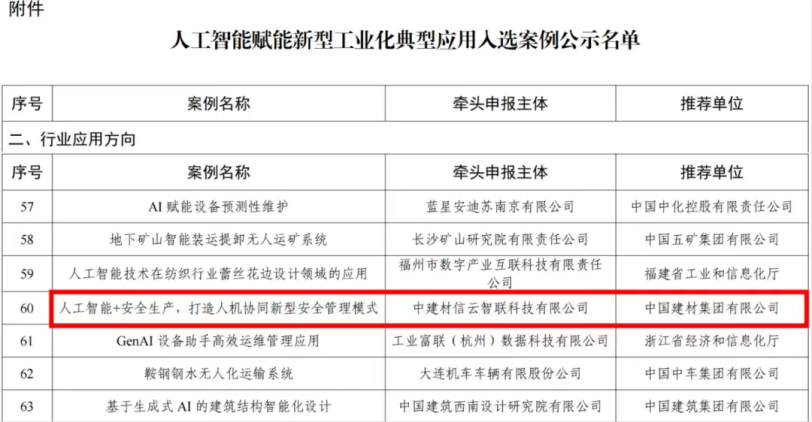 ? 2024年入選《人工智能賦能新型工業(yè)化典型應(yīng)用入選案例公示名單》